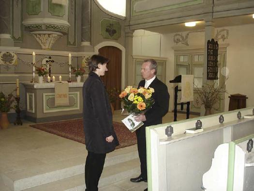 "Unsere Kirche sieht gleich ganz anders aus" , "fast wie neu" nur zwei von vielen guten Worten während des Gottesdienstes zur Einweihung der neuen (alten Dorumer) Bänke am 8. Juli in der kleinen Dorfkirche in Gallschütz/Sachsen. Nach erfolgter Renovierung durch Gallschützer Gemeindeglieder sah man den Bänken ihr Alter nicht mehr an. Bei einem Besuch in der Dorumer Partnergemeinde fielen Detlev Mattis aus Ablaß die ausgemusterten Bänke auf. Mit dieser Idee fand er beim Gallschützer Kirchenvorstand offene Türen vor. Einige Wochen später hatte Detlev Mattis einen Transporter besorgt und die Bänke fuhren Richtung Sachsen. Beim Missionsgottesdienst mit anschließendem Kirchencafe freuten sich alle über das Geschenk aus Norddeutschland.