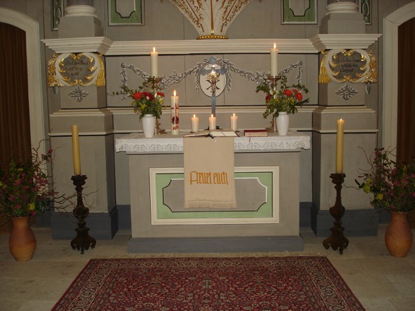 Sornzig ist der Hauptort des Kirchspiels Sornzig, zu dem die Kirchengemeinde Ablaß gehört. Die Bilder zeigen die Kirche mit dem eingerüsteten Turm, der derzeit durch eine umfangreiche Baumaßnahme vor dem Zusammenbruch bewahrt wird und den Altar. Sornzig ist der Wohnsitz der Pfarrerin.